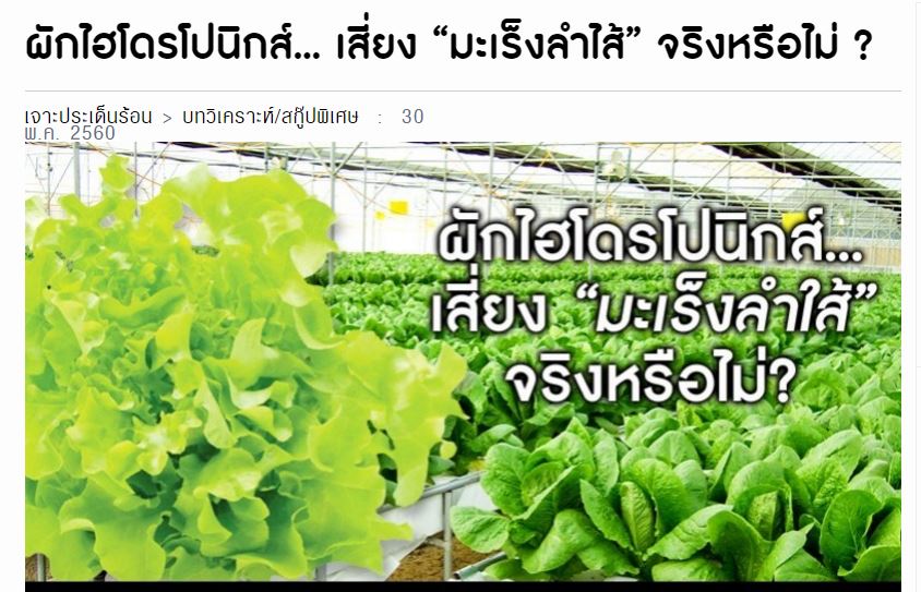 "ผักไฮโดรโปนิกส์ (ที่ปลูกได้มาตรฐาน) ไม่ได้เสี่ยงมะเร็งลำไส้ครับ"